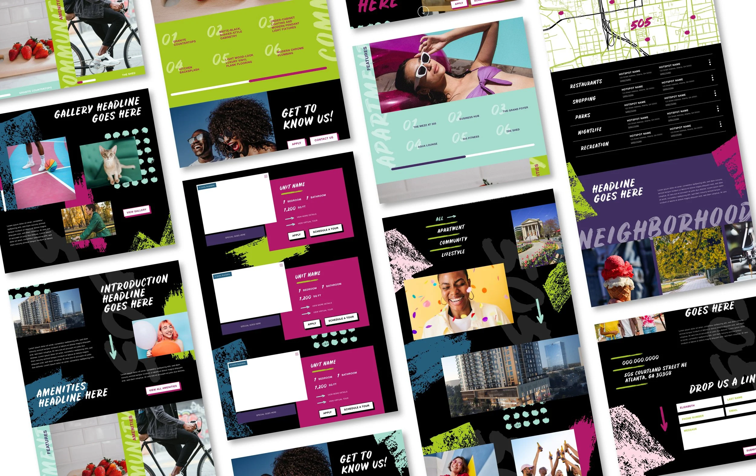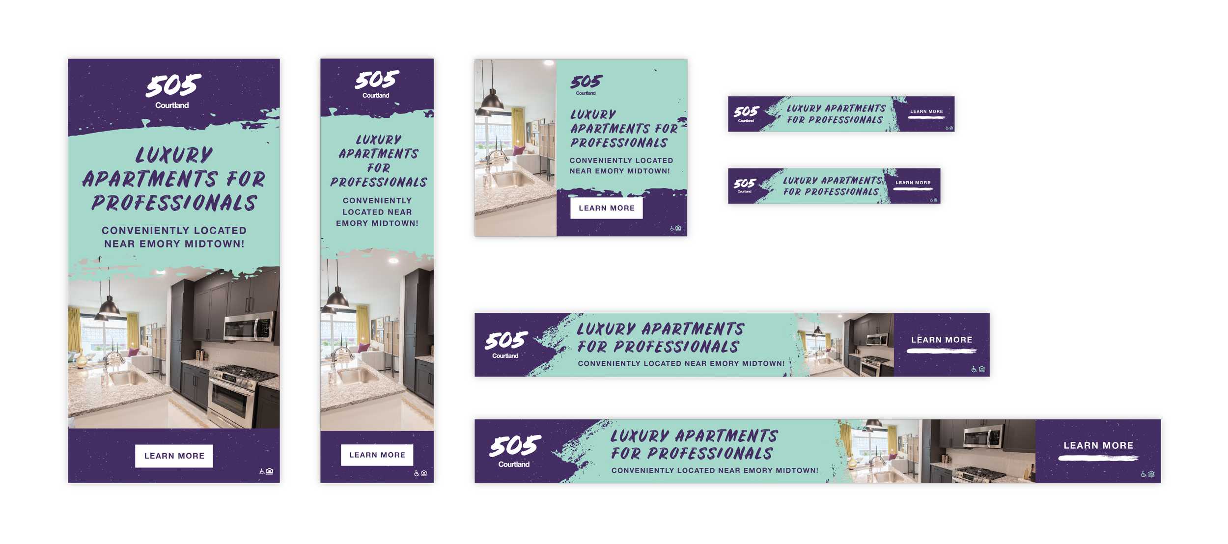 Located in the heart of Atlanta, Georgia, 505 Courtland effortlessly blends into the city’s dynamic energy. Its website reflects the community’s vibrant lifestyle through bold colors and eye-catching graphics, showcasing the unique experiences it offers residents. To boost visibility, a targeted brand awareness campaign combines geofencing ads with strategically placed light pole signage to attract potential residents.
